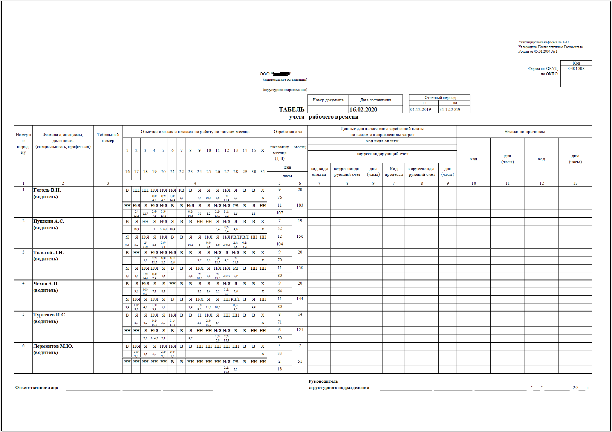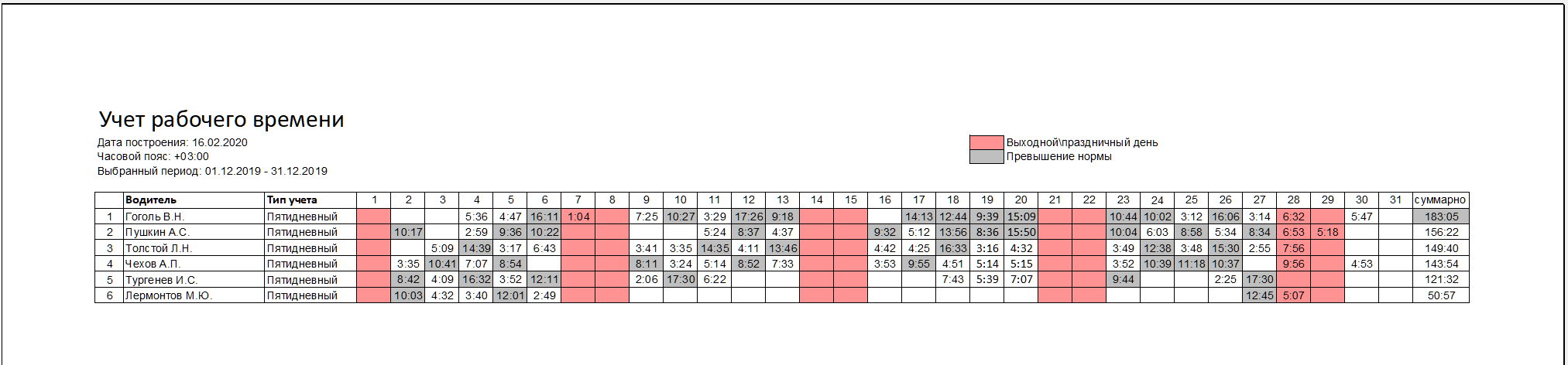 Эта таблица может быть удобна для быстрого анализа переработок по водителям.