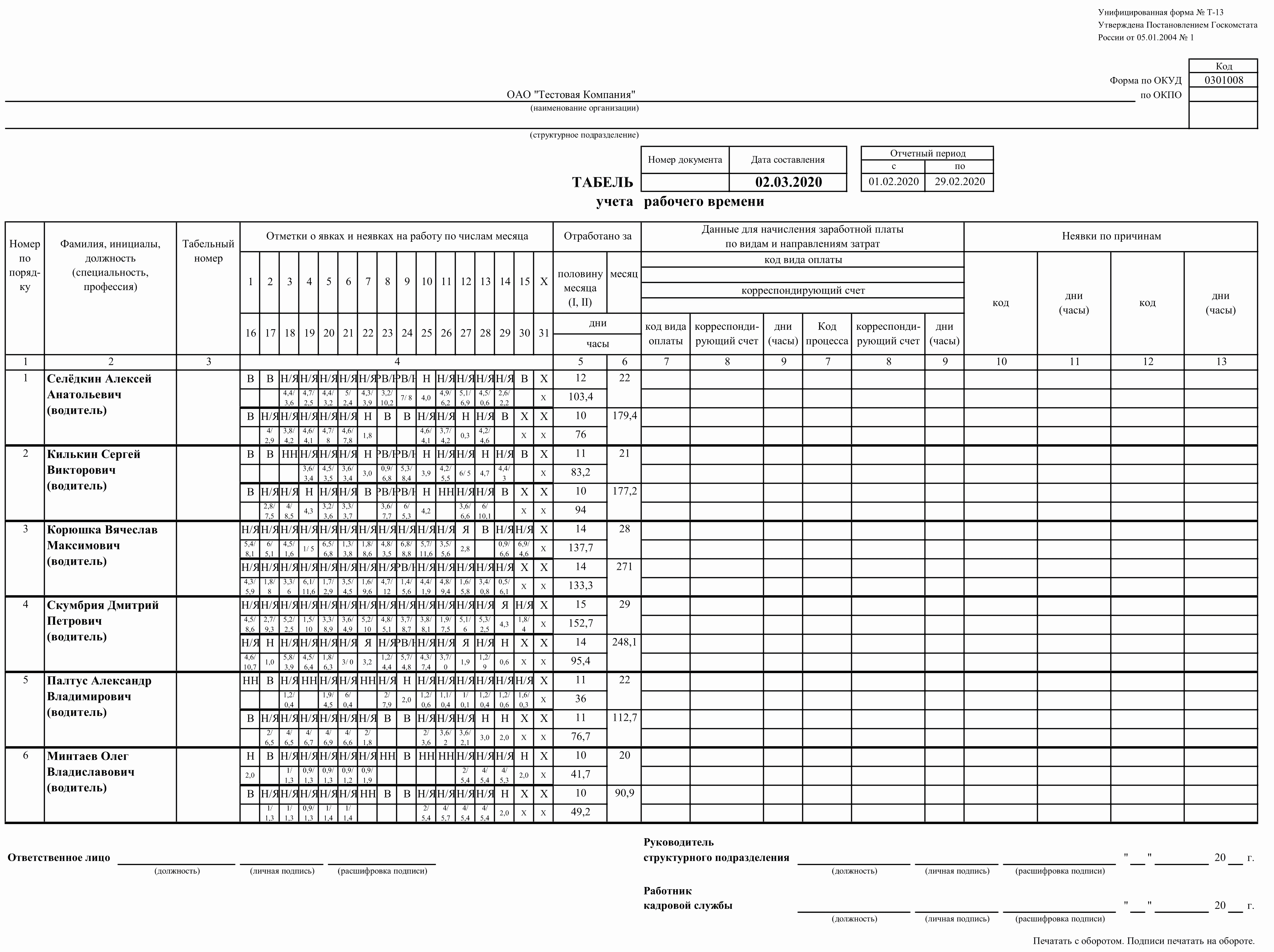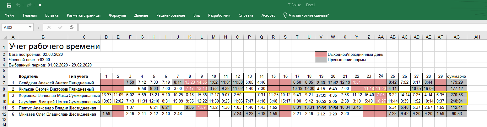 Для экономии времени, вы можете выгрузить данные для табеля учета рабочего времени по форме Т-13 прямо из GR.CARDS.