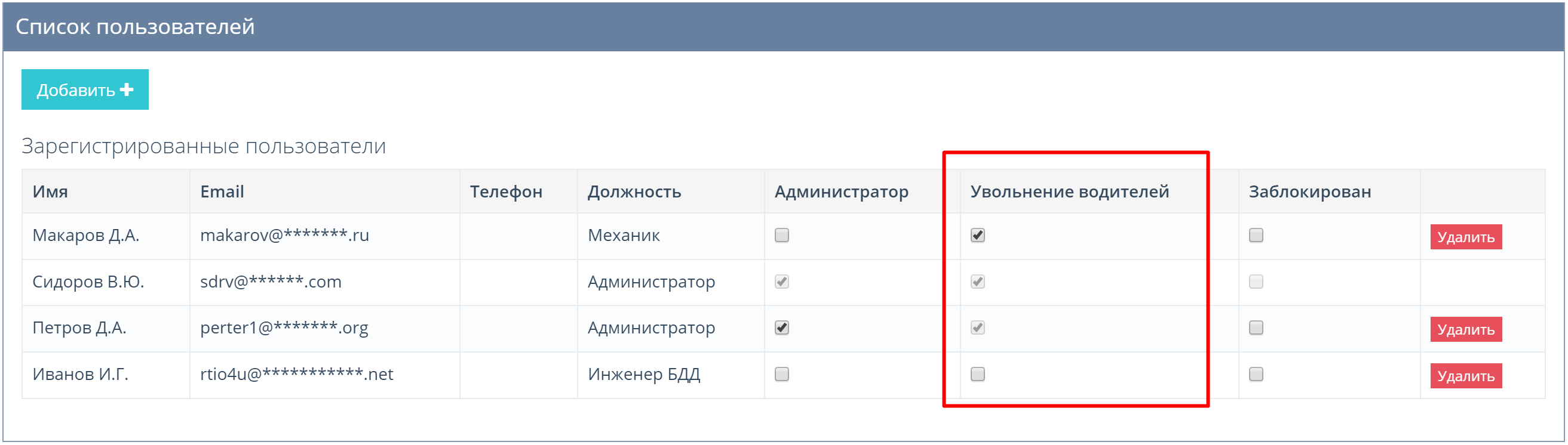 В этом месяце мы добавили разграничение прав доступа для того, чтобы сотрудники без прав администратора не могли случайно “уволить” водителя. Ранее такие случаи встречались, поэтому теперь пользователи, обладающие полным доступом, могут запретить производить “увольнение” другим лицам.