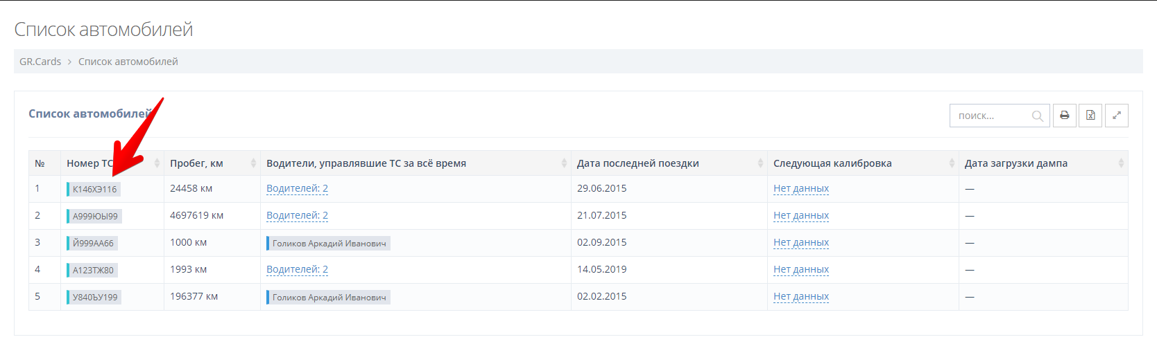 2. Нажмите на гос. номер автомобиля, который хотите скрыть.