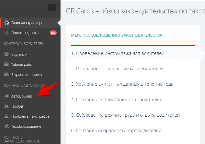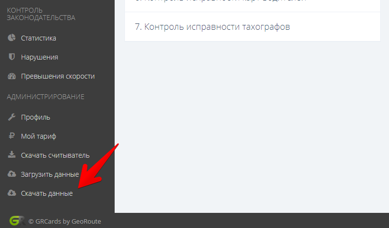 6. Если вы загружали в Личный кабинет данные из внутренней памяти тахографа скрытого автомобиля, то вы можете в любой момент их выгрузить в разделе «Скачать данные».