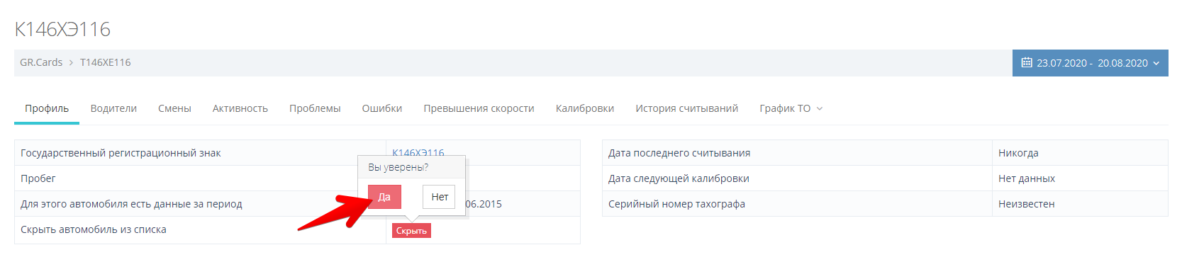 Если ваша компания продала один из автомобилей, то его нужно скрыть из списка автомобилей в личном кабинете GR.CARDS.