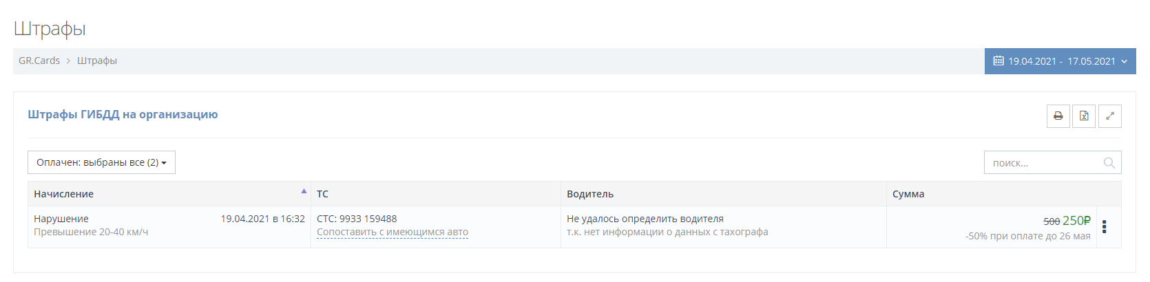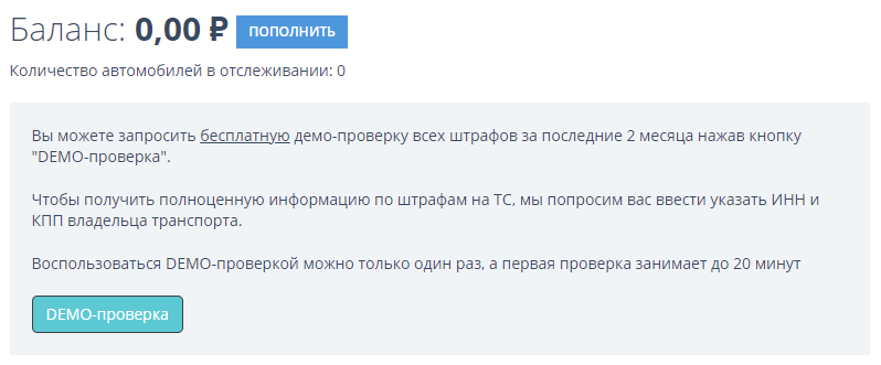 Теперь вы можете самостоятельно попробовать весь функционал раздела, сделав пробный запрос штрафов за последние 30 дней.