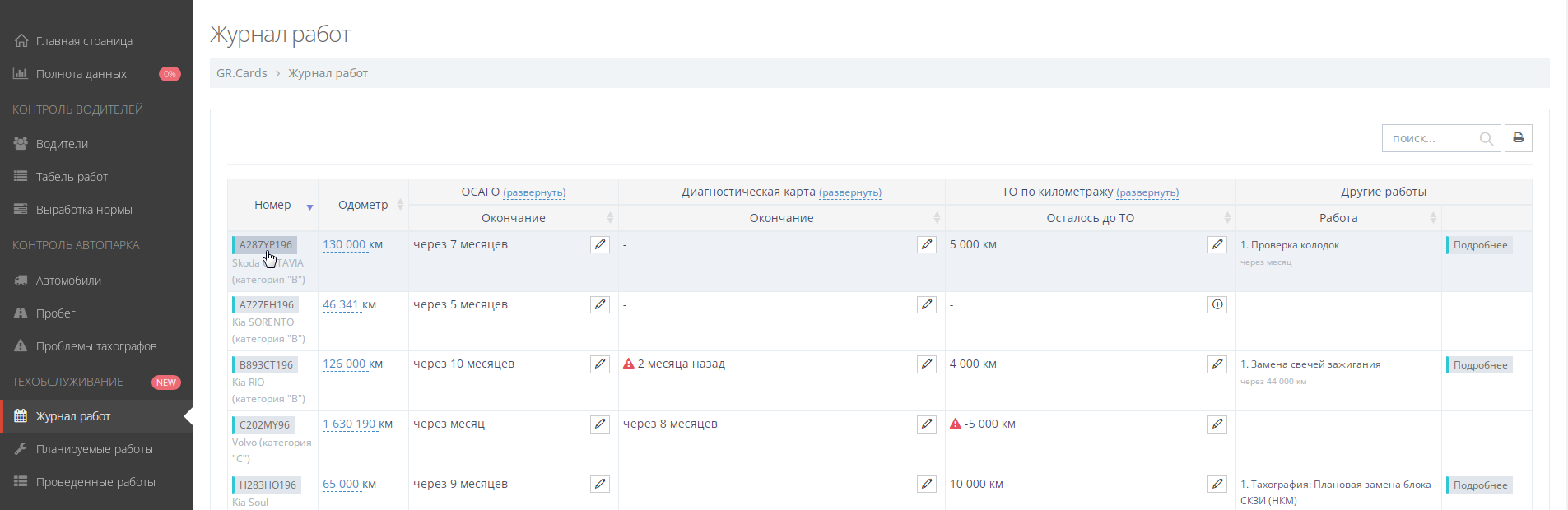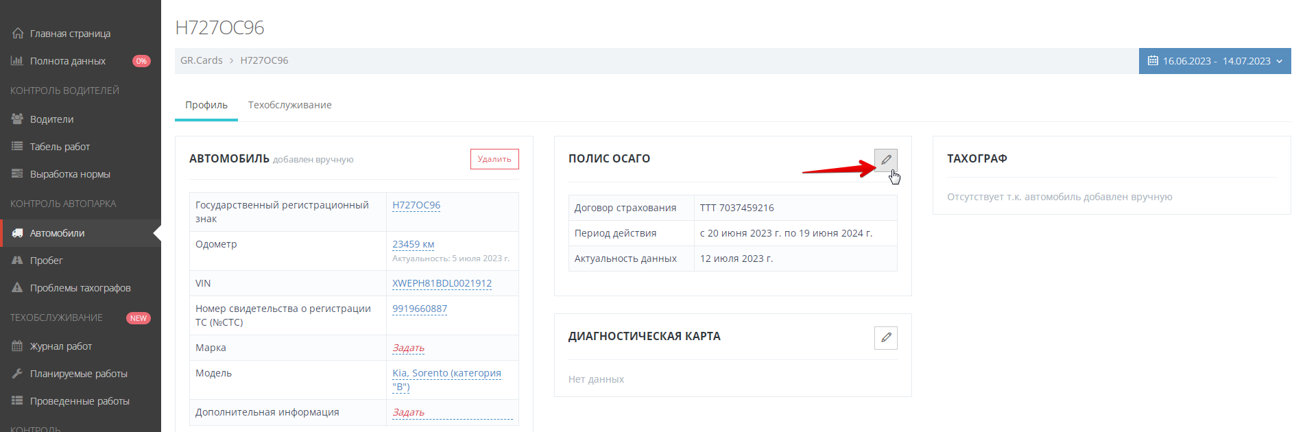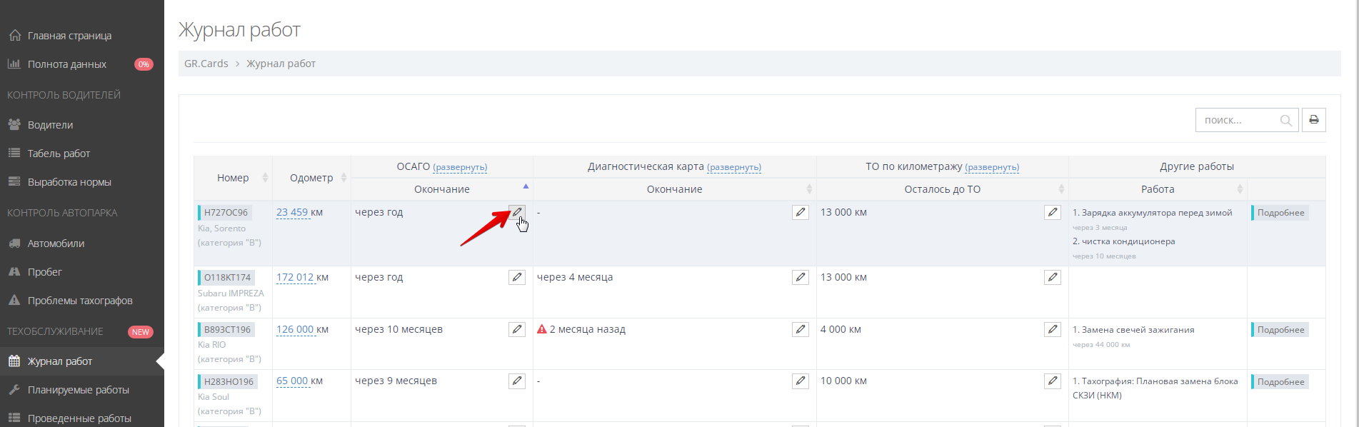 4. Либо нажмите на гос. номер автомобиля, чтобы войти в его карточку.