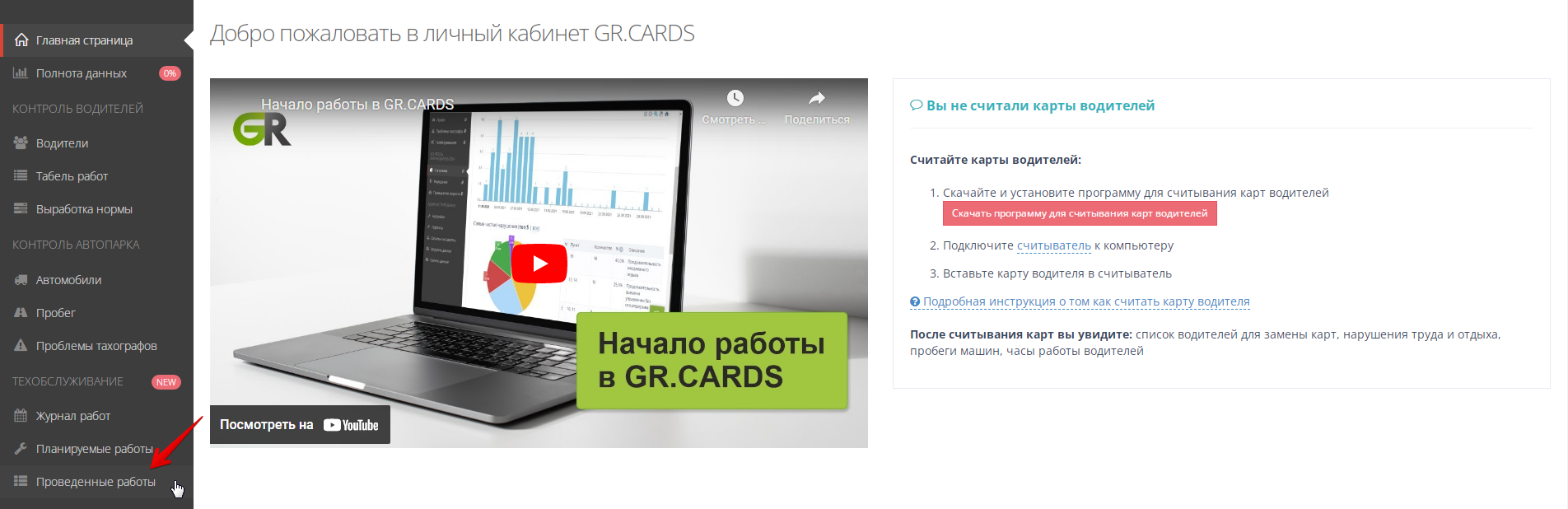 4. В карточке автомобиля перейдите на вкладку «Техобслуживание».